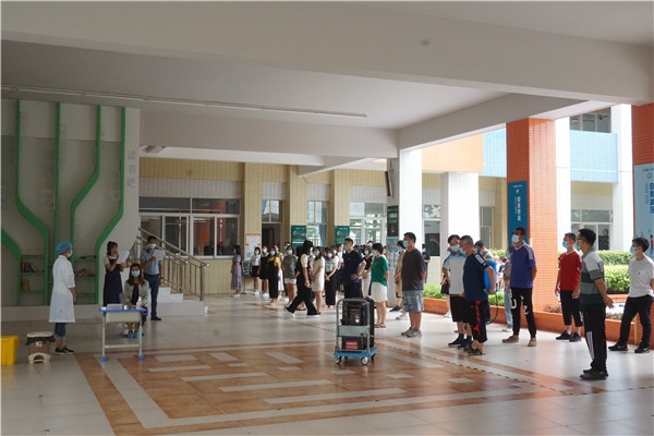 “同學(xué),你好!你的體溫偏高,現(xiàn)在額溫槍顯示為37.4℃,請?jiān)俅闻浜蠙z測……體溫仍然偏高,顯示為37.4℃,請你稍等。”為確保返校工作能夠平穩(wěn)有序地進(jìn)行,經(jīng)學(xué)校多方籌備,8月30日上午,廣源學(xué)校舉行2020年秋季學(xué)期開學(xué)師生返校新冠肺炎疫情防控應(yīng)急處置演練,全體教職工參加了本次演練。