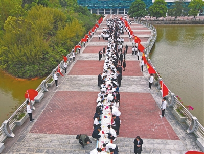 同學(xué)們在長長的校道上繪制畫卷。本報(bào)記者 文波 攝