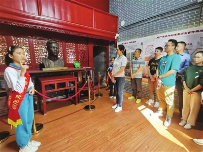 演講抑揚(yáng)頓挫,或激昂、或痛惜,一旦緊張就以肢體語(yǔ)言化解。紅領(lǐng)巾宣講員肖希洛說(shuō),從去年起通過(guò)學(xué)校系統(tǒng)的導(dǎo)賞培訓(xùn)和演講練習(xí),對(duì)劉廣生烈士的革命事跡已爛熟于心。然而,面對(duì)一群大哥哥大姐姐,難免會(huì)緊張,大腦空白。“劉廣生等革命烈士們面對(duì)當(dāng)時(shí)的中國(guó),組織學(xué)生救亡圖存。他們的困難肯定比我們多,我面前這點(diǎn)小困難算什么?”肖希洛說(shuō),開(kāi)展紅色導(dǎo)賞不僅鍛煉了她的表達(dá)能力和應(yīng)變能力,革命先輩的紅色故事也成為她克服學(xué)習(xí)生活中一個(gè)個(gè)難題的動(dòng)力。