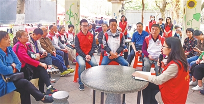 城南社區(qū)黨委書記李嘉清開展黨史學習教育微宣講。本報記者 文波 攝