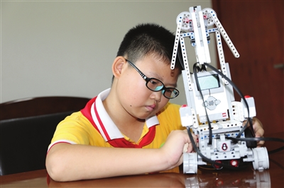 學習之余,盛藝承會和媽媽參與公益活動,感受助人的快樂。最近,因為看到爺爺坐著手推輪椅諸多不便,于是他構思了一款能自動避讓障礙物、自動打開雨傘的智能輪椅,并用樂高EV3智能機器人制作出輪椅模型,準備參與今年市級青少年科技創(chuàng)新大賽。