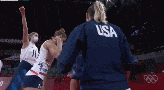 本場(chǎng)比賽的前兩局,中國(guó)女排打得非常頑強(qiáng),但還是相繼以27-29、22-25失利。到了關(guān)鍵的第三局,或許是認(rèn)為比賽已經(jīng)板上釘釘,每當(dāng)美國(guó)女排得分,場(chǎng)邊的隊(duì)員都會(huì)跳舞慶祝。
