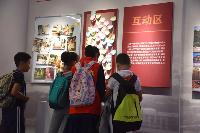 小記者參觀中山溫泉黨史教育基地互動區(qū)。