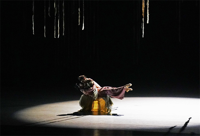 “之所以這樣選擇,是因為舞劇多表現(xiàn)個人與外界的矛盾,但《杜甫》卻是更多表現(xiàn)他內(nèi)心和外界的矛盾,影子就是杜甫的鏡子,是他的內(nèi)心。舞劇中有杜甫自己和時代的對話,自己和自己的對話,所有對話又會轉(zhuǎn)化為矛盾,他自己和國家的矛盾、官場的矛盾……所以我們不是在舞蹈,而是希望用自己的肢體語言去探尋他的所思所想,也就是導演一直在跟我們強調(diào)的‘動機編舞’,是什么想法驅(qū)使他做了這個動作”。