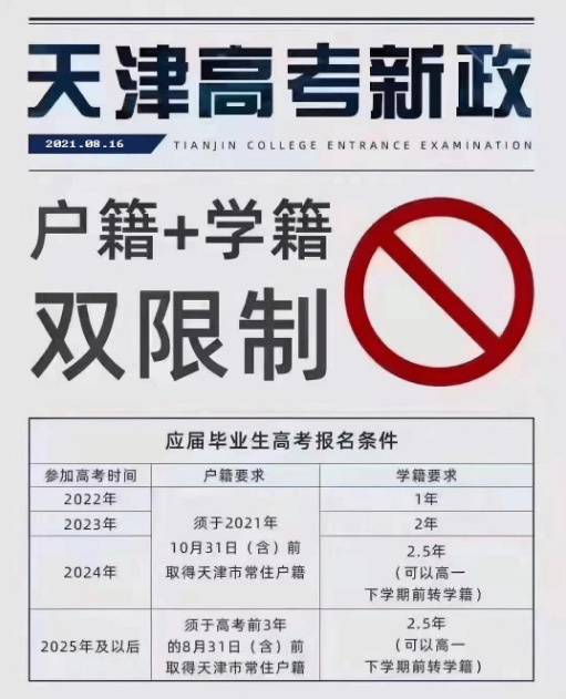 除擁有天津戶籍外,還需要滿足三年高中學(xué)籍的要求。換句話說,只有在天津讀滿三年高中的學(xué)生,才能參加高考。這一要求將在2022年實(shí)行。