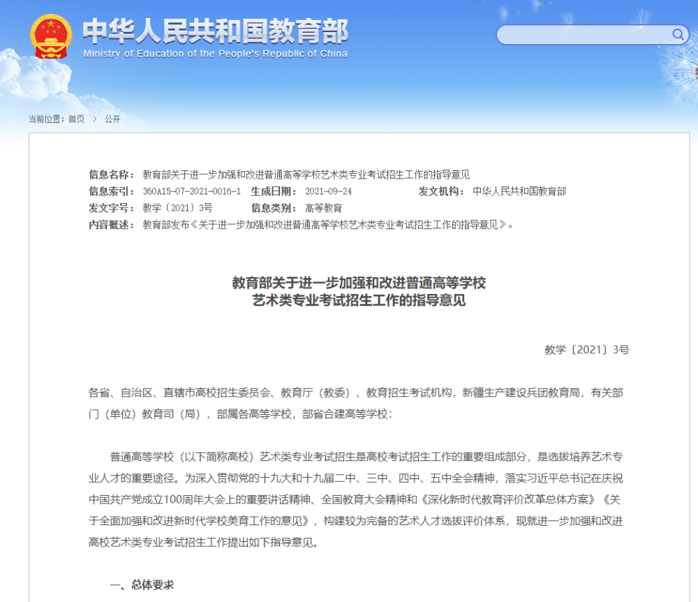 9月24日教育部召開藝術(shù)類專業(yè)和高水平運動隊招生改革工作會議,會議中針對藝術(shù)類和體育類高校專業(yè)招考進行了重新規(guī)劃。