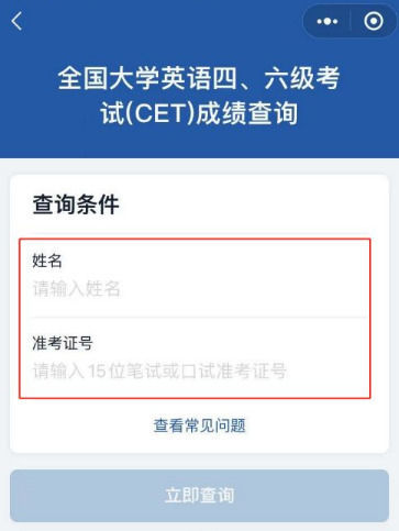5、輸入查詢條件,點(diǎn)擊立即查詢就可以查詢英語(yǔ)四六級(jí)成績(jī)了。