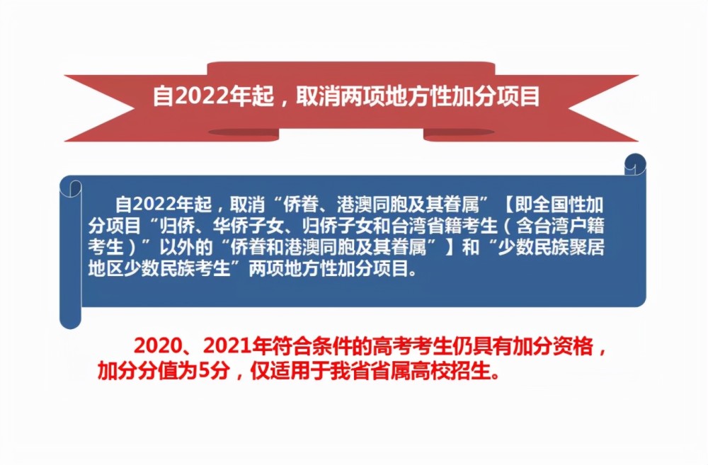 根據(jù)教育部傳來的關(guān)于高考改革的新消息當中,可以看到,從2022年開始,地方性加分項目被取消,其中就包括歸僑子女、歸僑、華僑子女、臺灣籍考生;