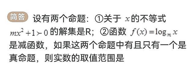 對(duì)于這種“P和Q兩個(gè)命題有且僅有一個(gè)為真,求參數(shù)取值范圍”的題目,我們通常先將P、Q兩個(gè)命題都當(dāng)成真命題,分別求出此時(shí)參數(shù)的取值范圍,當(dāng)命題為假時(shí),參數(shù)取值范圍就是前面求出范圍的補(bǔ)集,然后再分類討論得到參數(shù)最終的取值范圍。