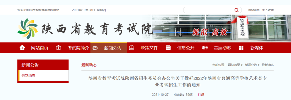 陜西省2022年藝術類專業(yè)考試招生工作的通知 截圖