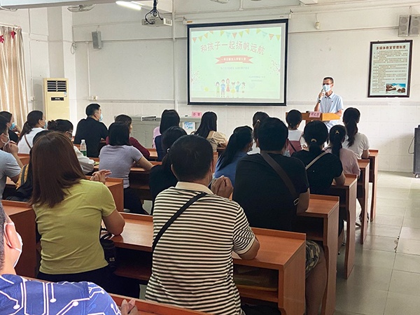 下午3點(diǎn),家長們準(zhǔn)時來到學(xué)校參加培訓(xùn),培訓(xùn)的第一項(xiàng)是由永一小學(xué)鄧文忠校長解讀學(xué)校的辦學(xué)理念,介紹一年級教師。然后由晏黎老師主講主題是《和孩子一起揚(yáng)帆遠(yuǎn)航》的講座。晏老師從幼小學(xué)習(xí)生活的差別、新生入學(xué)常見問題兩方面闡述為什么要進(jìn)行新生及家長培訓(xùn),接著分別從創(chuàng)建學(xué)習(xí)氛圍、養(yǎng)成良好習(xí)慣、學(xué)習(xí)人際交往、更新育兒觀念四個方面引導(dǎo)家長幫助孩子盡快適應(yīng)小學(xué)生活。家長們聽得很仔細(xì),并認(rèn)真做好記錄。最后,家長回到各班,由班主任進(jìn)一步布置開學(xué)的工作。
