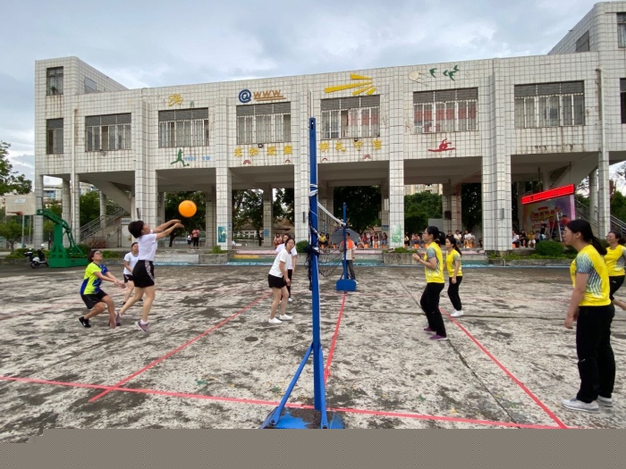 陰雨天氣動(dòng)搖不了教職工們的熱情,合勝小學(xué)的盧校長(zhǎng)就此次聯(lián)誼活動(dòng)作發(fā)言后,兩校的教職工進(jìn)行了大合照。教職工們已經(jīng)躍躍欲試了。安阜小學(xué)的女將們服裝統(tǒng)一,神采奕奕。氣排球是一直深受教職工的喜愛(ài),經(jīng)常放學(xué)后自發(fā)組織練球,借此機(jī)會(huì)兩校切磋球藝,進(jìn)行球技競(jìng)賽聯(lián)誼,是再好不過(guò)的事。兩校的教職工在球場(chǎng)上一展風(fēng)姿,開(kāi)球、傳球、接球、扣球,每一步都默契配合,最有意思的是余校長(zhǎng)也參與其中,成為主力隊(duì)員,和老師們打成一片,啦啦隊(duì)員們?cè)趫?chǎng)下加油助威,大家沉浸在歡樂(lè)之中。