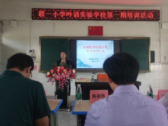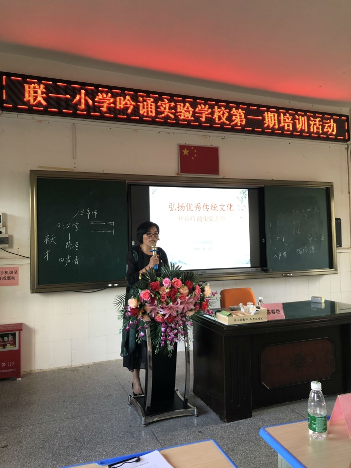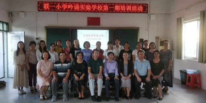 吟誦清音雅調,弘揚傳統(tǒng)文化 2020年6月聯(lián)一小學成功申報了“中華經典詠誦實驗學校。”9月 17日下午,舉行了簡單而隆重的“中華經典吟誦實驗學?!苯遗苾x式及培訓活動。 出席本次活動的領導、嘉賓有:廣東省特級教師專業(yè)委員會副秘書長,中山市教育學會會長,中山市中小學中華優(yōu)秀傳統(tǒng)文化教育讀書會副會長,聯(lián)一小學“中華經典吟誦實驗學?!敝笇ь檰栮惔浩G先生;鎮(zhèn)教育事務指導中心教研員梁北橋先生;鎮(zhèn)教育事務指導中心張凱先生;兄弟學校安阜學校校長余壁鋒先生,以及聯(lián)一小學全體行政和語文老師。 活動伊始,舉行了簡單而隆重的揭牌儀式。潘虹校長為陳春艷會長頒發(fā)了指導顧問聘書,并對本次活動致辭。 接著,陳春艷會長以“吟誦的價值及教學路徑”為主題,從“吟誦的涵義;吟誦的作用;吟誦教學的三級臺階;吟誦教學案例舉隅”四個方面給全體教師進行吟誦技巧培訓。陳會長的指導有高度和深度,有很厚的理論,還結合實例進行了細致的指導,深入淺出地講授了吟誦的必備專業(yè)知識,讓所有參培人員對吟誦有了更深層次的認識。其中還深入傳授了“吟誦教學的三級臺階”,1.聽吟誦錄音,輔助教學;2.教給學生吟誦基本知識;3.學習鑒賞和度曲吟誦。這些接地氣的內容不僅將老師帶入了一個全新學習領域,拓寬了教師的視野,更解決了當前老師著手開展經典吟誦的難題。 活動最后,陳麗娥副校長對本次活動進行了小結,對全體教師提出了要求,全體教師要讓詠誦和語文教學,校園、班級文化建設深度融合,讓詠誦促進語文教學,讓吟誦涵養(yǎng)全體師生的心靈,讓校園的每一個角落充分展現(xiàn)中華經典詠誦的巨大魅力。 短暫而精心的培訓結束后,老師們熱情高漲,信心滿滿,對未來吟誦工作的開展充滿憧憬。培訓學習有如春風化雨,滋潤著大家的心田,外在的吸收借鑒必將內化為自覺行動,讓清音雅調走進課堂,經典溢滿校園,讓華夏文明生生不息,代代傳承 !