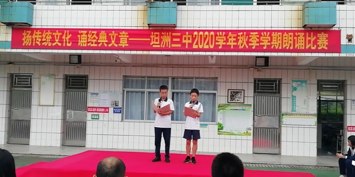 揚傳統(tǒng)文化,誦經(jīng)典文章——坦洲三中舉辦2020年秋季學(xué)期朗誦比賽發(fā)布時間:2020-09-27 15:27 信息來源:本網(wǎng)站 瀏覽次數(shù):0