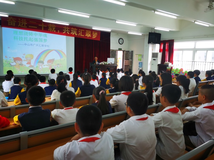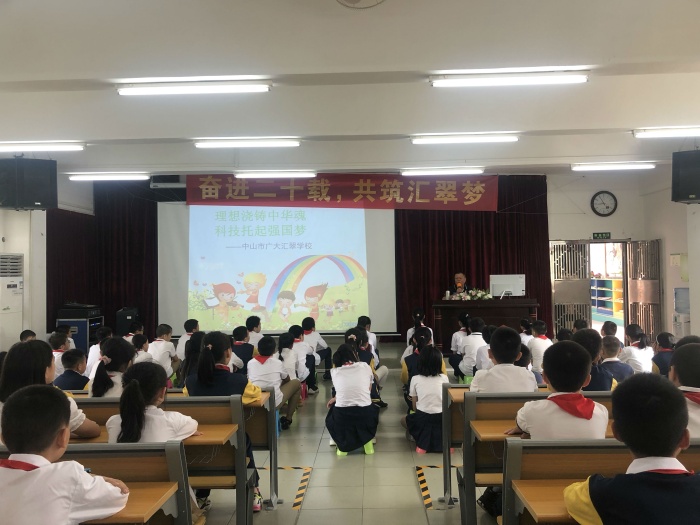 為扎實而有效地開展《愛黨愛國愛科學(xué),爭當新時代好少年》主題教育活動,培育新一代有夢想的青少年,中山市廣大匯翠學(xué)校特邀坦洲鎮(zhèn)關(guān)工委“五老”講師團成員之一的李桂華老師到校進行《理想澆鑄中華魂,科技托起強國夢》主題教育講座。