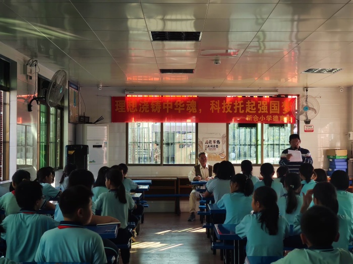 昂首奮進(jìn)新時(shí)代,同心共筑中國夢(mèng)。承著黨的十九屆五中全會(huì)勝利召開的東風(fēng)。聚焦新目標(biāo),開啟新征程。聆聽著偉大祖國邁進(jìn)新時(shí)代的凱歌。今天2020年11月12日,新合小學(xué)師生在這令人歡欣鼓舞的時(shí)刻。開展了“理想澆鑄中華魂,科技托起強(qiáng)國夢(mèng)”主題教育活動(dòng),主講人是坦洲鎮(zhèn)講師團(tuán)成員、退休老校長梁容福。