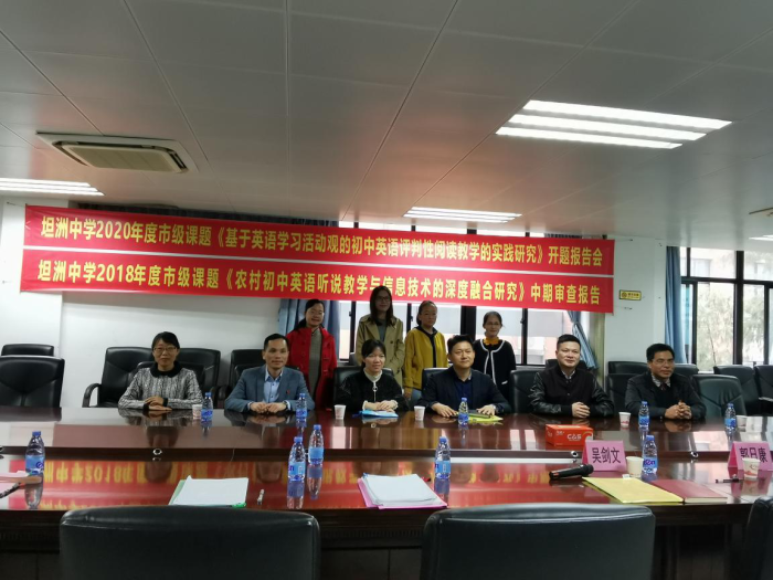 12月25日上午,坦洲中學(xué)順利召開了英語科2020年中山市教育科研立項青年課題開題暨2018年中山市立項青年課題中期評審會。中山市教研室張?zhí)﹦偫蠋?、辛健老師、何娟老師、坦洲?zhèn)教育事務(wù)指導(dǎo)中心梁北橋主任、中山市名教師鄧凱老師應(yīng)邀出席。坦洲中學(xué)吳劍文校長、郭日康副校長及英語科組的老師參加了會議。鄧心花主任主持會議。