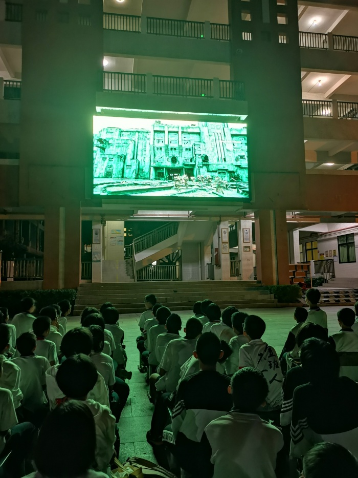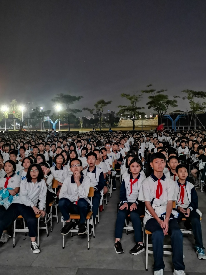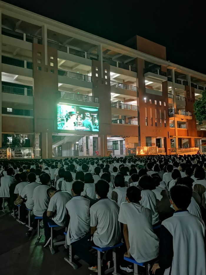 為加強(qiáng)愛國主義教育,激發(fā)學(xué)生愛國主義情感,豐富校園文化生活,11月19日晚上,吳劍文校長、黃金麗副校長帶領(lǐng)全校1800多名師生,觀看愛國主義電影《八佰》。