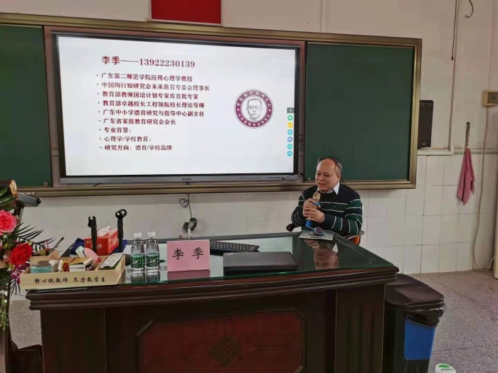 隨后,李季教授為全體教師開展講座。李教授從“德育一體化建構(gòu)的立德樹人”到“幫助學(xué)生找到最適合自己的學(xué)習(xí)方式”等一一展開。李教授謙遜平實(shí)、樸實(shí)真誠、字字珠璣,讓老師們享受了一席豐盛的精神大餐。雖然乍暖還寒,春寒料峭,老師們卻感受到春意盎然、熱情澎湃,并深深地被李教授和藹可親的人格魅力和專業(yè)學(xué)識(shí)所吸引著。