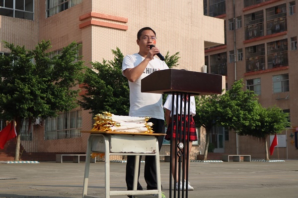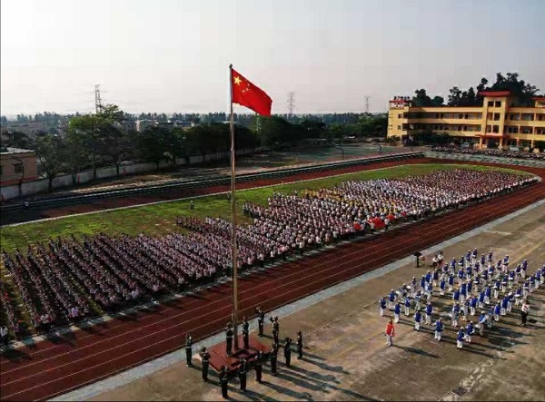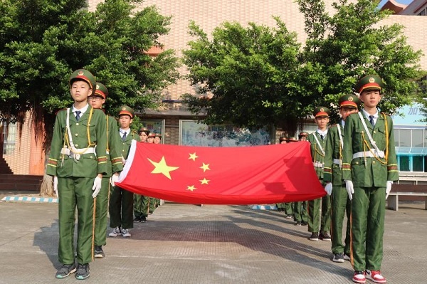 活動在一陣美妙的奏樂聲中開始,鼓號隊穿著盛裝排著整齊的隊伍,用最熱情洋溢的節(jié)拍迎接國旗護衛(wèi)隊的閃亮登場,旗手們精神抖擻、神采飛揚,邁著整齊的步伐向我們走來了,在雄壯的國歌聲中,國旗緩緩升起,師生們熱情高漲......全校近3000名師生員工一起高呼吶喊“祖國萬歲!”“祖國萬歲!”,聲音響徹云霄。何偉華副校長做主題講話,他慷慨激昂、滿懷深情的講述了中國如何歷經(jīng)磨難和屈辱,一路從泥濘黑暗中走來,走向光明和富強!走到了今天中華人民共和國成立70周年,真正的給師生們上了一節(jié)生動的思想政治課。何副校長最后告誡同學(xué)們:“不忘國恥,奮力拼搏!不忘初心,牢記使命!少年強則國強!我們要愛國敬業(yè),爭做有為的新一代!”。接著是“文明班級”、“雅行之星”頒獎儀式,同學(xué)們收獲了滿滿的成就感;最后,張榮炬主任強調(diào)國慶長假的安全要求,他要求同學(xué)們時候樹立安全第一的思想,結(jié)合日常生活實際,從各方面提出了注意事項和具體要求,確保師生們度過一個愉快安全的假期。