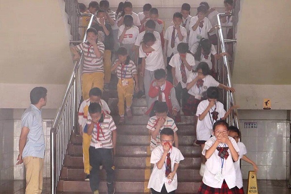 上午9:05,校園內(nèi)火警警鈴聲響起,演練正式開(kāi)始。各班主任及樓層負(fù)責(zé)人按照演練方案指揮學(xué)生進(jìn)行撤離。各班學(xué)生在班主任的帶領(lǐng)下,用手帕、紙巾或手捂著鼻子,俯身前進(jìn),迅速撤離到學(xué)校運(yùn)動(dòng)場(chǎng)。全體師生在整個(gè)疏散過(guò)程中做到井然有序、行動(dòng)快速,配合默契。整個(gè)演練過(guò)程用時(shí)2分25秒,全校師生2300多人安全撤離安全區(qū)域。何偉華校長(zhǎng)就本次疏散演練進(jìn)行了總結(jié),他強(qiáng)調(diào)了緊急逃生演練的重要意義,并對(duì)全體師生在演練中緊張迅速、安全有序的表現(xiàn)給予了充分的肯定,他要求全校師生今后要時(shí)刻“增強(qiáng)安全意識(shí),珍惜自己的生命”。隨后,政安防火宣傳中心的李教官給全體師生進(jìn)行了消防知識(shí)的培訓(xùn)。