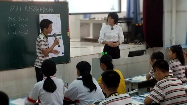 高艷玲老師當(dāng)節(jié)課教學(xué)的是初中三年級數(shù)學(xué)《幾何圖形的最大面積》,整節(jié)課包括回顧思考、合作交流、拓廣探索、方法歸納、課堂總結(jié)等幾個環(huán)節(jié)。課堂教學(xué)過程環(huán)環(huán)相扣、逐步推進,通過充分的師生互動、生生互動,構(gòu)建了一個平等自由的對話平臺,全班學(xué)生處于積極、活躍、自由的學(xué)習(xí)狀態(tài)。課堂上,教師通過設(shè)置巧妙的數(shù)學(xué)情境和課堂問題,充分調(diào)動學(xué)生的學(xué)習(xí)積極性和主動性,學(xué)生在合作交流中充分地表達、爭辯,很好地鍛煉了創(chuàng)新思維能力,學(xué)生真正成為課堂的主體,積極參與到教與學(xué)的互動過程中來,并在這個過程中實現(xiàn)知識和能力的雙豐收。