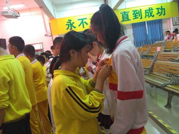 活動在莊嚴(yán)的國歌聲中儀式拉開了帷幕。隨后初中部鄧財秀主任宣讀了新加入中國共產(chǎn)主義青年團團員名單并由老團員給新團員們頒發(fā)佩戴共青團團徽,并落實了團徽的標(biāo)準(zhǔn)佩戴要求。當(dāng)佩戴上團徽的那一刻起,他們正式成為一名光榮的共青團員。
