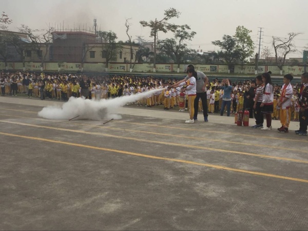 演練的第二部分為珠海市消防安全員李警官進(jìn)行的消防知識培訓(xùn)。李警官從最簡單的消防火警電話到發(fā)現(xiàn)火情的處理辦法、消防器材的選擇、使用等方面對師生們進(jìn)行了培訓(xùn),師生們的學(xué)習(xí)熱情非常高漲,尤其是最后的實(shí)踐環(huán)節(jié),上至學(xué)校女教師,下至低年級的學(xué)生、膽子比較小的女生都踴躍上臺進(jìn)行嘗試,隊(duì)伍排成了一條長龍。師生們也通過實(shí)踐,掌握了滅火器的正確使用方法。