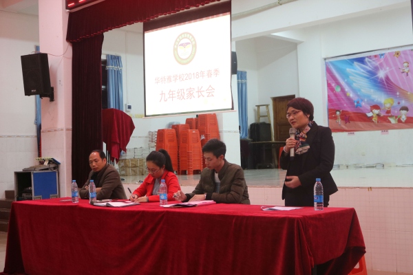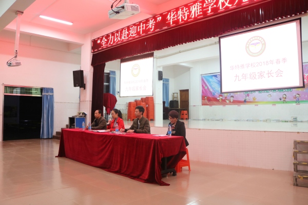 隨著2018年中考臨近,學(xué)校各項備考工作正緊密的進(jìn)行,為了進(jìn)一步提高初三備考工作的成效,促進(jìn)家校之間的密切配合,共同做好學(xué)生的教育工作,3月9日晚,華特雅學(xué)校組織召開了初三畢業(yè)班家長會,初中部教務(wù)主任段銀燈、德育主任鄧財秀、初三全體老師及家長們出席了本次會議。