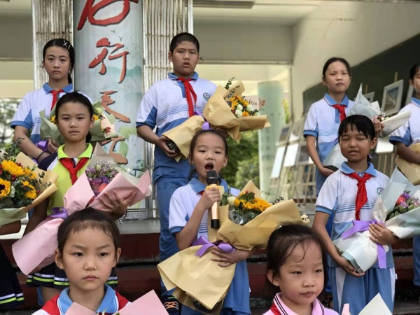 畢業(yè)班的孩子很用心的準(zhǔn)備了在小學(xué)的最后一個(gè)教師節(jié)。六(2)班學(xué)生代表陳梓瑤發(fā)表講話,講述了余美卿老師帶著受傷的手批改作業(yè)的故事,讓人感動(dòng)。六(1)班用口風(fēng)琴演奏《地球是個(gè)美麗的圓》,六(2)班詩詞朗誦《獻(xiàn)給老師》,并演唱《 老師我想對(duì)您說》分別向語數(shù)英體藝等各科老師道出了心聲,老師們和場下的小觀眾們都聽得入了神,這是最真誠的祝福。