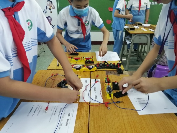 考核前,任教五年級的科學老師認真指導學生進行科學實驗,學生的興致高漲,除了在科學課上開展實驗,課后也積極參加,每個實驗每個學生操作起來都特別嫻熟。