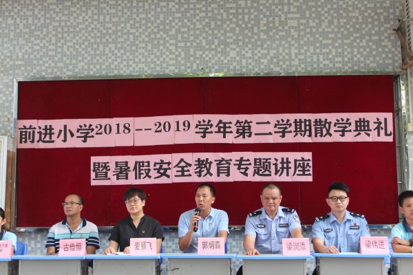 7月5日上午,坦洲鎮(zhèn)前進(jìn)小學(xué)全體師生齊聚在榕樹頭廣場(chǎng),舉行散學(xué)典禮。永前派出所梁潤(rùn)添、梁偉俊警官,校長(zhǎng)郭炳森、教導(dǎo)主任麥麗飛、總務(wù)主任古儉恒、優(yōu)秀學(xué)生代表羅曼妮、劉浩恒等列席參加了本次散學(xué)禮。