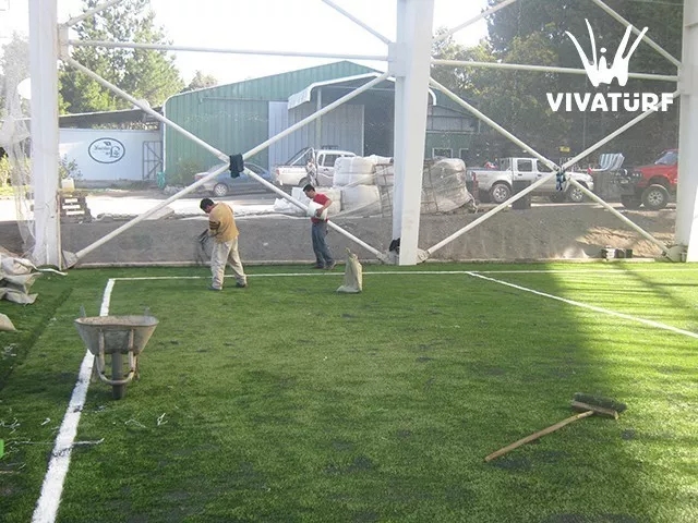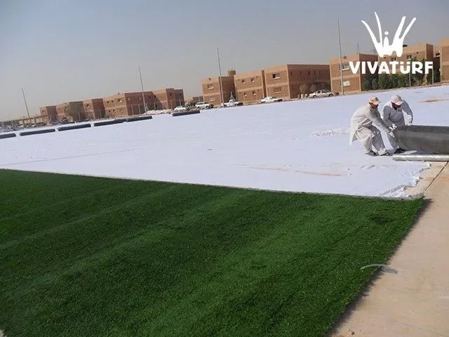 足球場人造草坪施工需要確?;A(chǔ)平整度達到95%以上及水泥石粉基質(zhì)達到10%,其次,鋪設(shè)人造草坪,在鋪設(shè)過程中發(fā)現(xiàn)地面不平整、基質(zhì)中摻雜雜質(zhì),則需要及時修復(fù)并清掃現(xiàn)場。