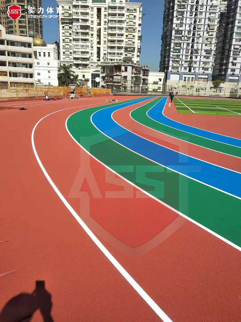 3、復(fù)合型塑膠跑道能滿(mǎn)足長(zhǎng)期高頻率使用要求。 4、防滑性好,避免跑動(dòng)中滑倒。