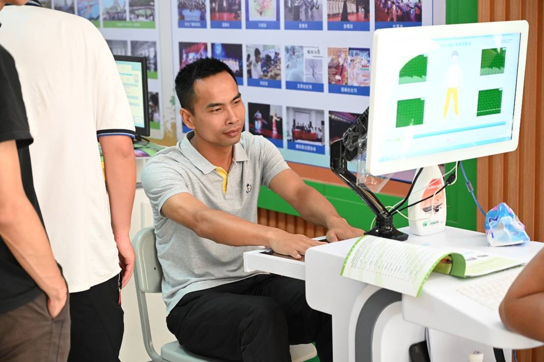 汕尾市全民健身廣場上人頭涌動,針對當?shù)乩夏耆说膰耋w測活動已連續(xù)四天舉行。在現(xiàn)場 ,有體質測定、全面健身指導以及體育彩票宣傳等環(huán)節(jié)。國民體質監(jiān)測車現(xiàn)場為群眾服務,據(jù)介紹,車上配備的精密檢測設備非常先進,既有有骨密度、脂肪含量及肌肉含量等身體成分的測試,又有動脈硬化的篩查,亦對心血管病的風險發(fā)病可能性評估并給出有針對性的科學鍛煉參考,甚至有脊柱健康狀況的檢查以及糖尿病風險的篩查,充分滿足了當?shù)乩夏耆罕娍茖W認識自身健康狀況的需求。