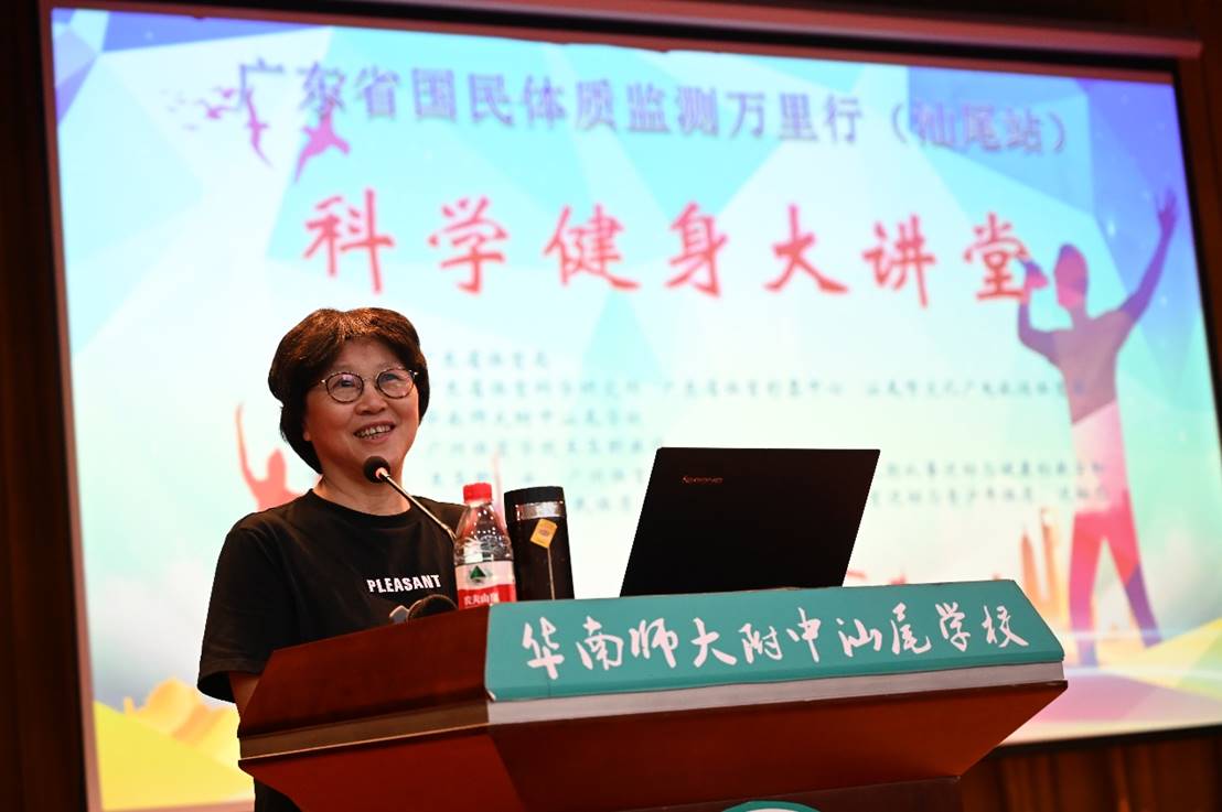 22日當日,華南師范大學附屬中學汕尾學?,F(xiàn)場除了舉辦體質測試,“提高健身意識,傳播健身知識”科學健身大講堂亦同時舉行舉行,近700名初一年級學生參與其中,是過去國民體質監(jiān)測萬里行活動組織過的最大規(guī)模的一次大講堂,成為汕尾站的最大亮點。