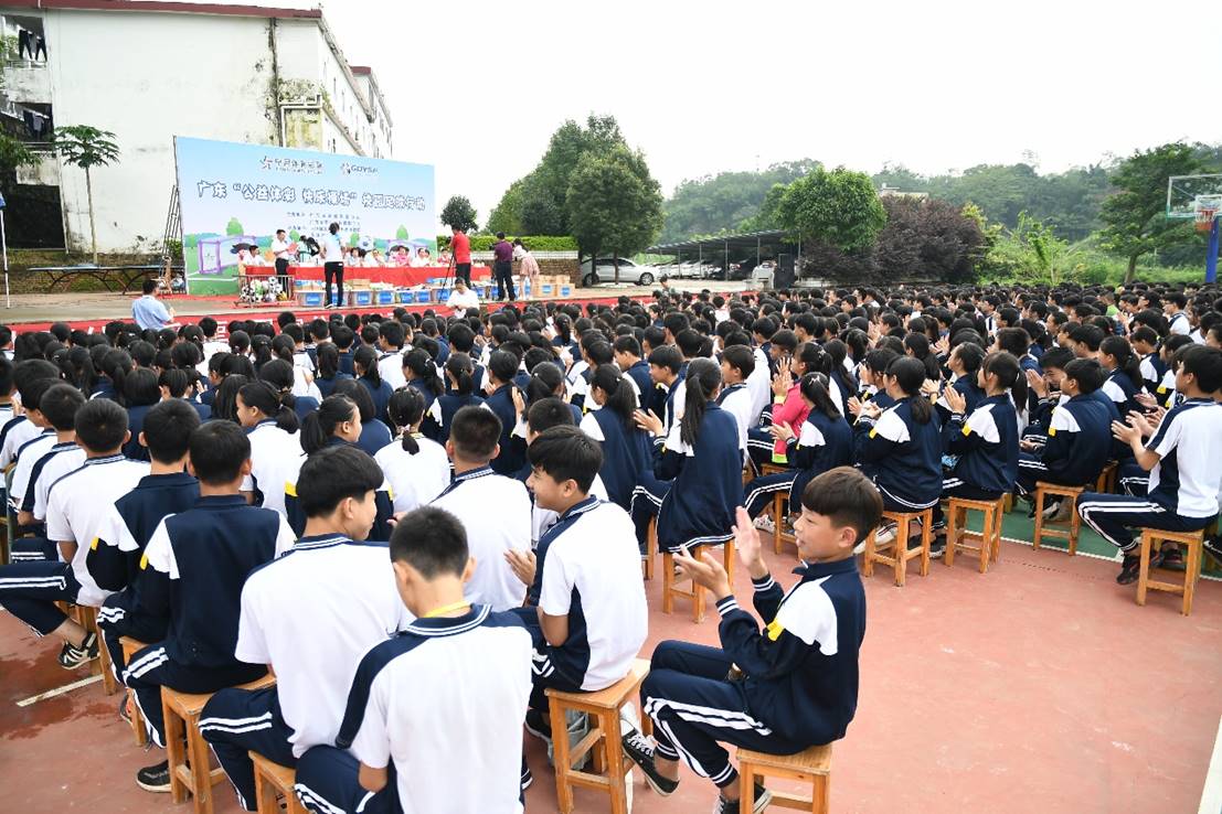 當(dāng)日上午九點(diǎn),活動(dòng)主辦方代表、奧運(yùn)冠軍張雁全以及梅州市、五華縣領(lǐng)導(dǎo)嘉賓在激昂的運(yùn)動(dòng)員進(jìn)行曲背景樂(lè)下來(lái)到大都中學(xué)運(yùn)動(dòng)場(chǎng)時(shí),早已列坐等候的全校師生發(fā)出雷鳴般的掌聲。“我在這學(xué)校工作五年了,這是我在這里見(jiàn)過(guò)的最大型最熱鬧的活動(dòng)”,學(xué)校體育老師陳練華說(shuō)道。