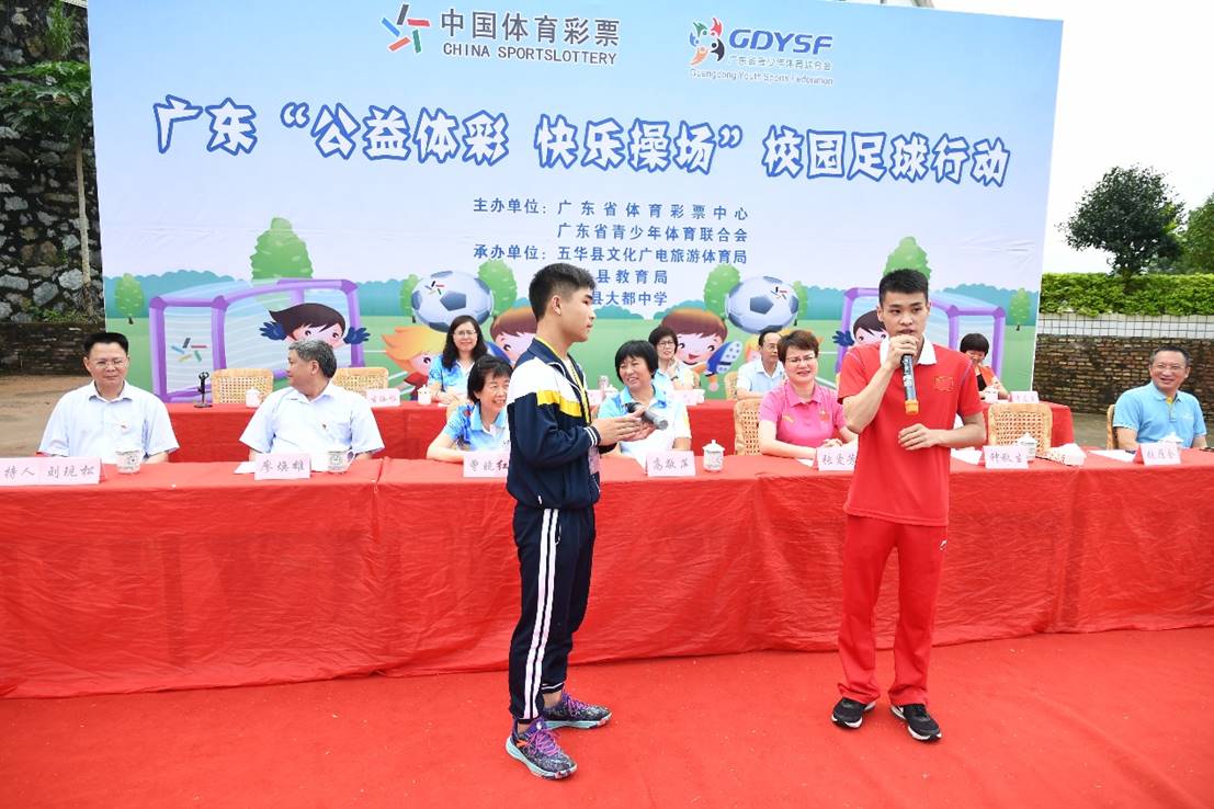5月28日,由廣東省體育彩票中心、廣東省青少年體育聯(lián)合會(huì)攜手開(kāi)展的廣東“公益體彩 快樂(lè)操場(chǎng)”校園足球行動(dòng)走進(jìn)梅州市五華縣大都中學(xué)。奧運(yùn)冠軍張雁全親臨現(xiàn)場(chǎng)與學(xué)校師生互動(dòng),分享傳播奧運(yùn)精神。主辦方還向?qū)W校捐了一大批足球器材,為該校發(fā)展校園足球貢獻(xiàn)力量,同時(shí)助力梅州足球特區(qū)建設(shè)。