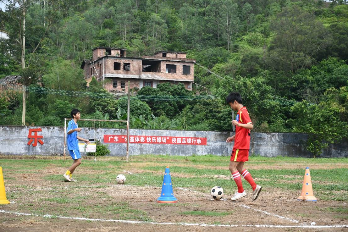 互傳、繞樁、頭球,一群穿著舊球衣、布球鞋的大都中學(xué)初一級(jí)學(xué)生展示了扎實(shí)的足球技藝。隨后,主辦方向?qū)W校捐贈(zèng)了體育器材,有足球、球衣、球鞋等。據(jù)了解,大都中學(xué)全校12個(gè)班級(jí),學(xué)生633人,卻沒(méi)有像樣的足球場(chǎng)地,沒(méi)有專(zhuān)業(yè)的體育教師,但學(xué)校足球氛圍濃厚,每學(xué)期定期開(kāi)展班際足球賽、三人足球賽、足球技巧大賽等一系列足球活動(dòng),并申報(bào)了廣東省校園足球推廣學(xué)校。