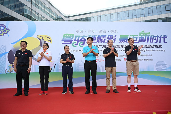 廣東省黃村體育訓(xùn)練中心主任、廣東省自行車運動協(xié)會主席蔡建祥,廣東省體育局群體處處長鐘志金,廣州日報社編委、體育新聞中心主任陳偉勝,廣州日報新媒體編輯部負(fù)責(zé)人、大洋網(wǎng)總編輯曹蘇寧,廣東省體育局群體處副處長楊英,廣東省體育局青少年訓(xùn)練競賽中心副主任姜永軍,廣東省自行車運動協(xié)會秘書長戚宇等領(lǐng)導(dǎo)和嘉賓出席啟動儀式,并為騎行活動鳴笛發(fā)車。