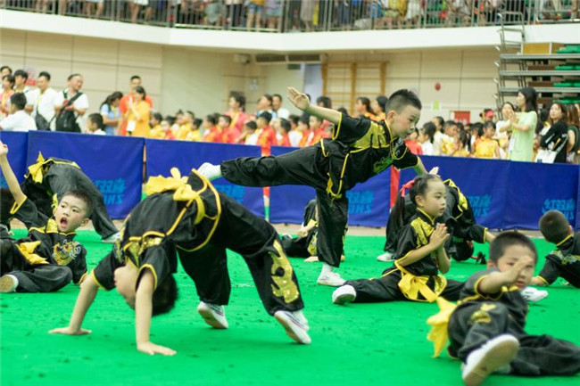 本屆嶺南武術文化周舉行了首屆廣東省幼兒武術嘉年華和“中國武術段位制”初段位考評賽的比賽。賽場上,最吸引眼球的無疑是來自全省各地幼兒園的2000多名小朋友的武術表演,他們當中年齡最小的只有三歲。今年幼兒組設置了五步拳、初級一路長拳、自編拳術、長器械、短器械等基礎套路,以及集體項目的表演。別看選手們年紀都這么小,一張張小臉上卻是精氣神十足。一招一式有板有眼,看著他們童趣十足卻又一絲不茍的表演,讓人不禁深受感染。比賽優(yōu)勝者還將獲得獎牌和相應的武術技術等級證書。