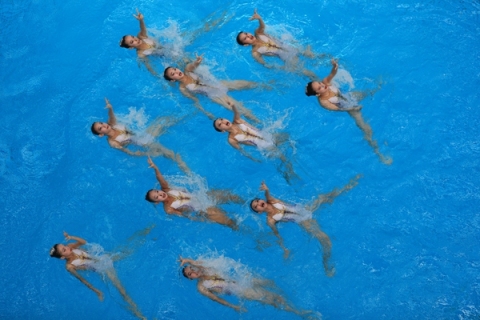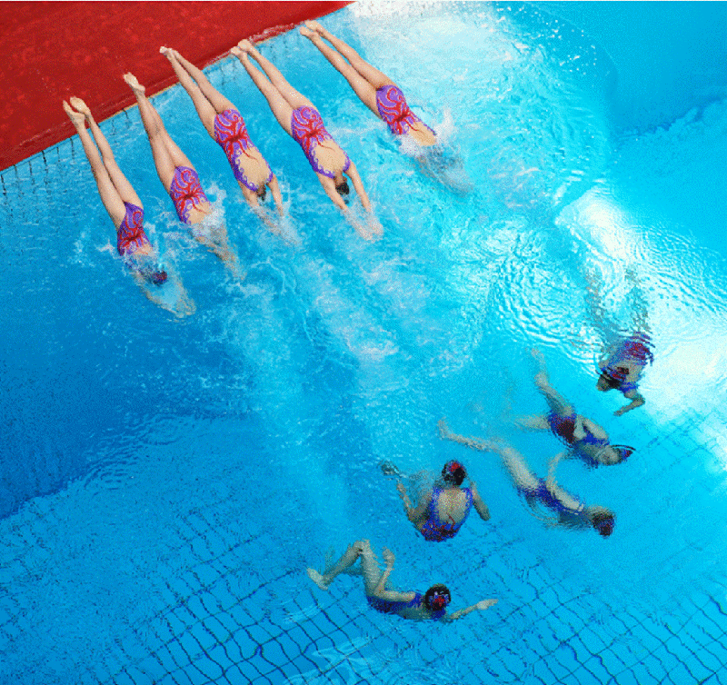 花樣游泳是一項具有藝術性的優(yōu)雅的體育運動,它也需要力量和技巧,需要許多年不斷的訓練來掌握。有十個裁判關注她們的每一個動作,運動員必須做出許多組推舉、旋轉、彎曲,所有這些動作都不能借助于池底的地面,還要在不呼吸的情況下作伸展,常規(guī)動作要持續(xù)五分鐘,同時進行表演,而即使在最緊張的常規(guī)動作要求里,水上芭蕾運動員們還要努力保持輕松的形象。