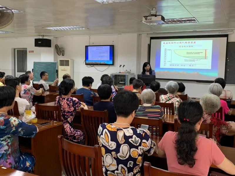 除了開(kāi)展體質(zhì)測(cè)試外,本次活動(dòng)還邀請(qǐng)了廣州大學(xué)體育學(xué)院的李爽教授為老年人進(jìn)行了題為“運(yùn)動(dòng)與健康”的講座,李教授結(jié)合老年人生活行為特征及普遍存在的健康問(wèn)題,把一些慢病預(yù)防的方法,以及如何通過(guò)科學(xué)運(yùn)動(dòng)來(lái)解決一些健康問(wèn)題進(jìn)行了生動(dòng)的講解。課后,很多人向李教授請(qǐng)教自身健康問(wèn)題的解決方法,并留下李教授的聯(lián)系方式,希望與李教授加強(qiáng)交流。