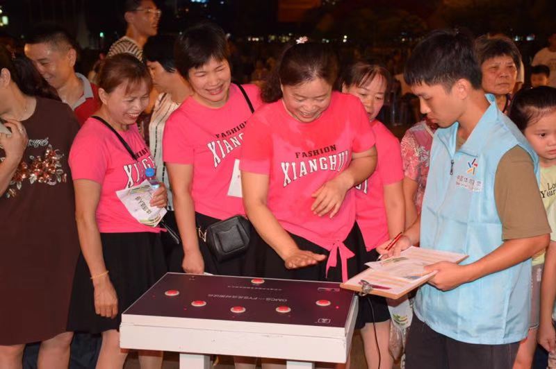 14日晚萬(wàn)里行服務(wù)隊(duì)來(lái)到了潮州市人民廣場(chǎng),在活動(dòng)現(xiàn)場(chǎng)開(kāi)展了體質(zhì)測(cè)試、健身項(xiàng)目展、體質(zhì)達(dá)人賽等活動(dòng),活動(dòng)氣氛熱烈,群眾參與熱情高漲。