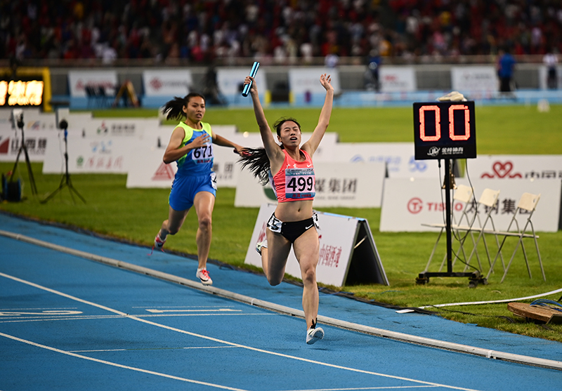 雙胞胎姐妹壓軸最后兩棒。朱翠薇第三棒出戰(zhàn),廣東依然維持較大優(yōu)勢,姐姐朱翠妍與妹妹接力后跑完最后一程,廣東隊領(lǐng)先山西隊0.8秒奪金。朱翠妍認為隊友建立的優(yōu)勢讓自己可以輕松應對最后一棒。