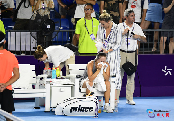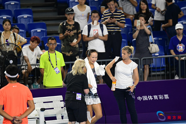 ?。戏骄W(wǎng)/訊 記者/朱江偉)9月18日晚,廣州國際女子網(wǎng)球公開賽女單1/8決賽繼續(xù)上演,中國金花彭帥對(duì)陣塞爾維亞小將斯托亞諾維奇。最終,彭帥以6-7(4)/6-2/0-6不敵斯托亞諾維奇。比賽末段,彭帥體力不支,但仍咬牙堅(jiān)持完賽。
