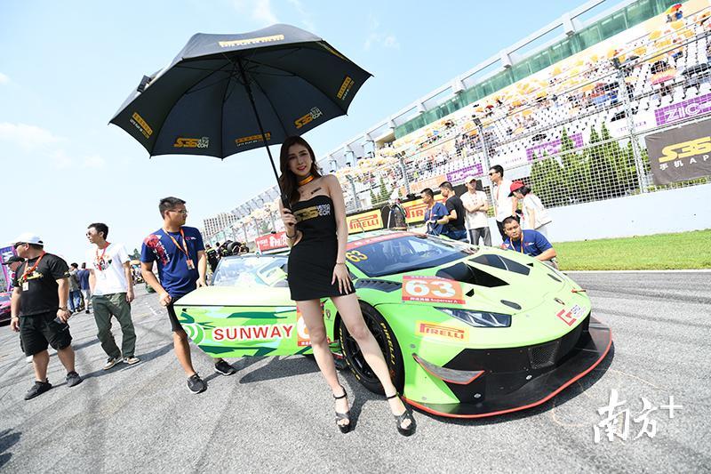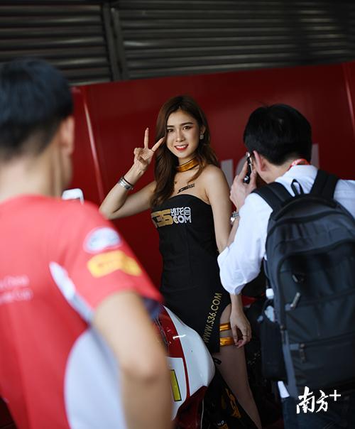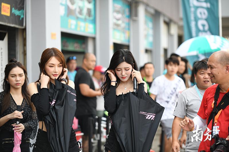 除了引擎的轟鳴聲,還有靚麗的車模助陣,她們?yōu)椴煌囮?duì)站臺(tái)宣傳,盡可能地吸引觀眾眼球。