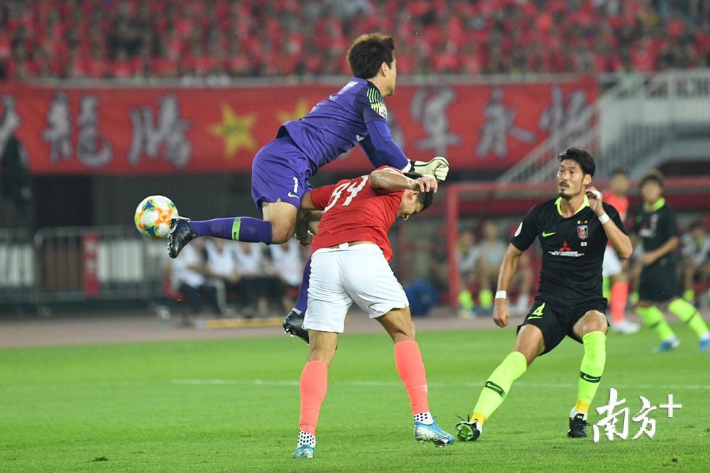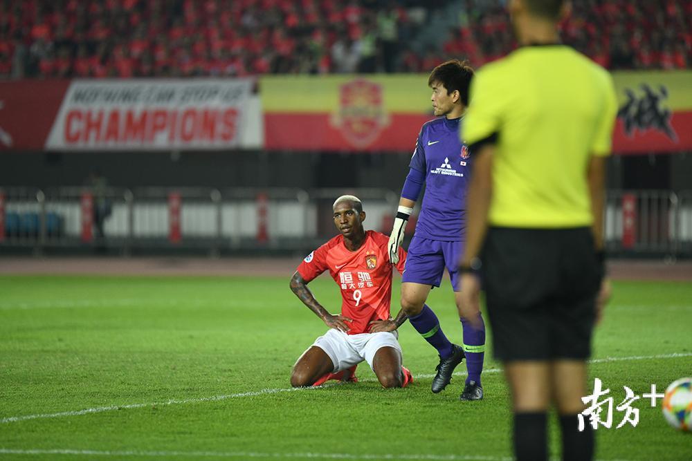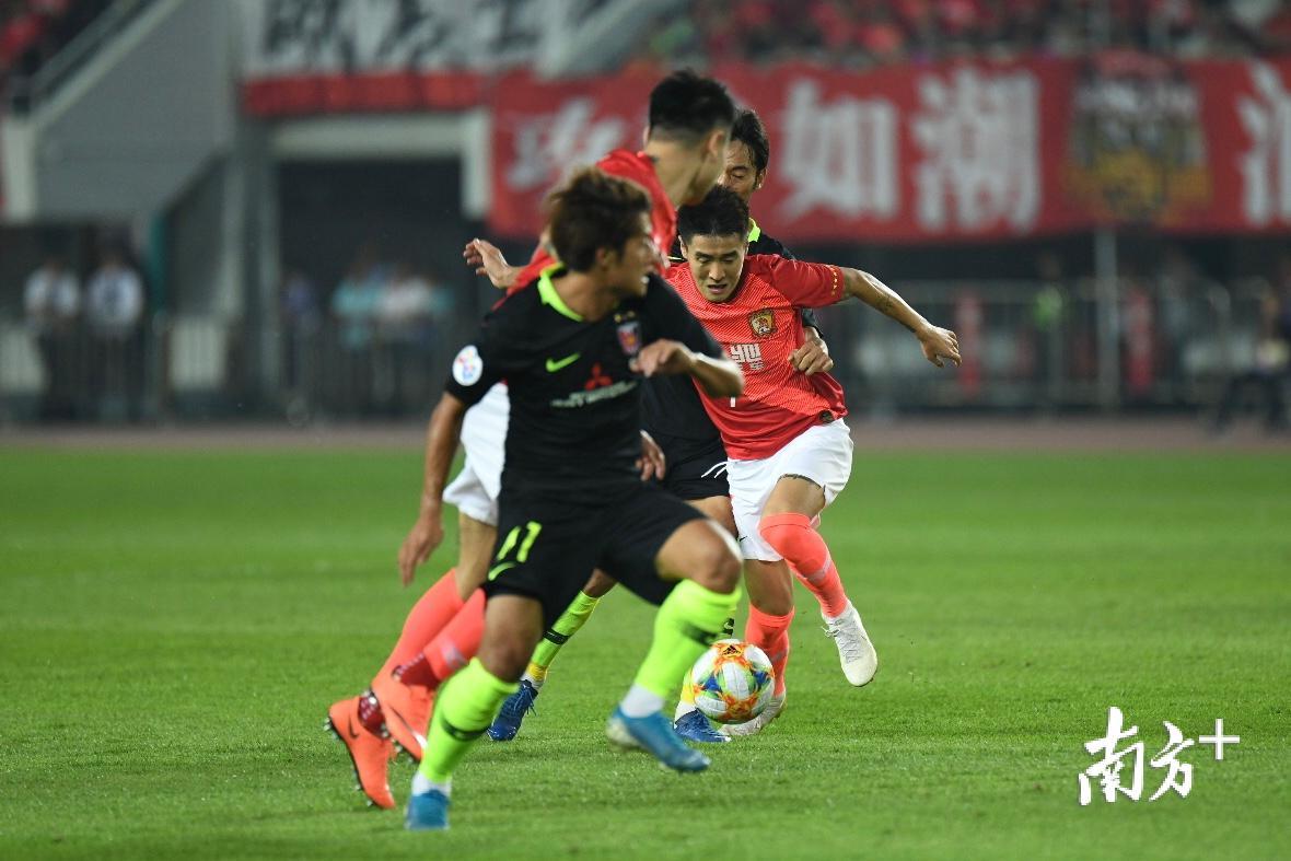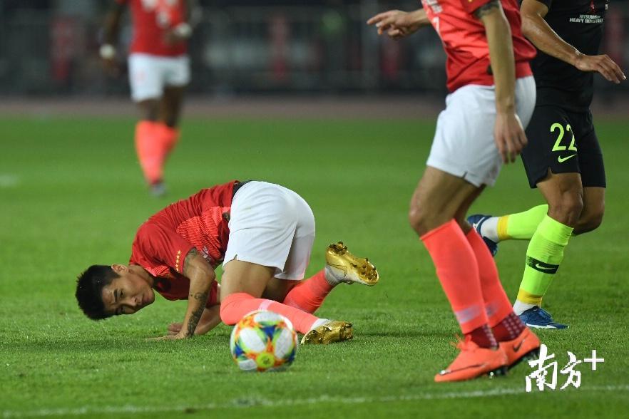 郜林艱難突破。失球后,廣州恒大瘋狂反撲,但依然無法撼動(dòng)對(duì)手防守陣線。