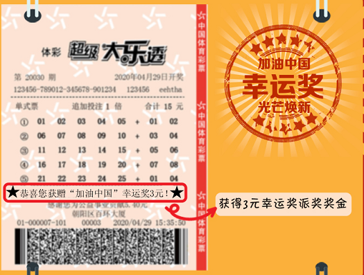 二是“加油中國”或“光芒煥新”幸運獎,所有進行追加投注的大樂透彩票,均有機會收獲“加油中國”或“光芒煥新”幸運獎3元。在收獲幸運的同時,也讓我們?yōu)樽鎳佑?,期待?zhàn)勝疫情、“光芒煥新”的日子早日到來!