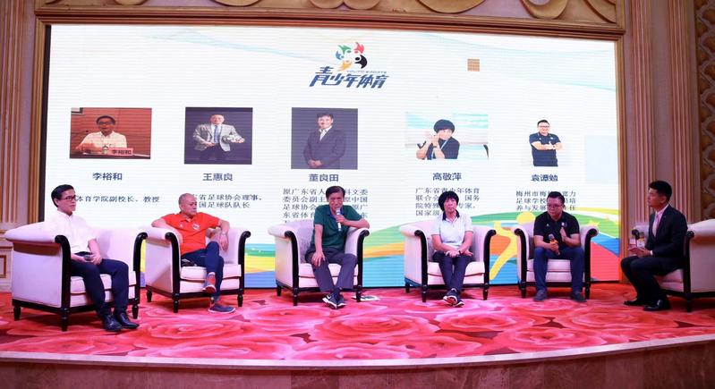 圓桌論壇環(huán)節(jié),邀請(qǐng)了原廣東省人大教科文委員會(huì)副主任、原中國(guó)足球協(xié)會(huì)副主席、原廣東省體育局局長(zhǎng)、廣東萬(wàn)力名人足球俱樂(lè)部理事長(zhǎng)董良田,廣東省青少年體育聯(lián)合會(huì)會(huì)長(zhǎng)、國(guó)務(wù)院特殊津貼專(zhuān)家、國(guó)家級(jí)教練高敬萍,廣東省足球協(xié)會(huì)理事、前國(guó)家足球隊(duì)隊(duì)長(zhǎng)王惠良,廣州體育學(xué)院副院長(zhǎng)李裕和、富力足校運(yùn)動(dòng)員培養(yǎng)與發(fā)展中心主任袁譚勉。各路體育大咖齊齊坐鎮(zhèn),深入分析與解讀粵港澳大灣區(qū)足球賽事活動(dòng)策劃,與此同時(shí),結(jié)合《體育強(qiáng)國(guó)建設(shè)綱要》,圍繞推動(dòng)粵港澳大灣區(qū)青少年足球運(yùn)動(dòng)發(fā)展、促進(jìn)青少年健康成長(zhǎng)和體育文化交流等主題展開(kāi)探討。